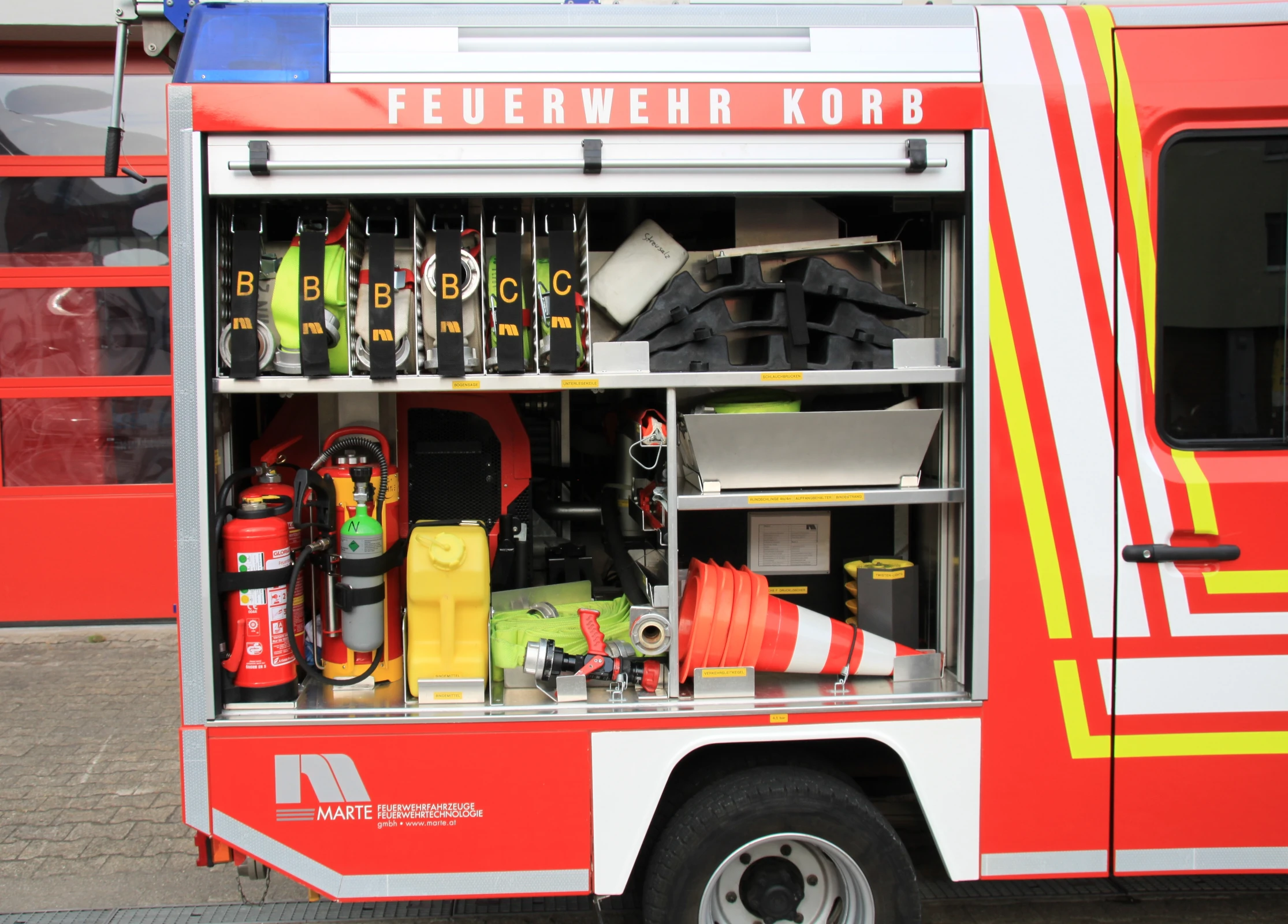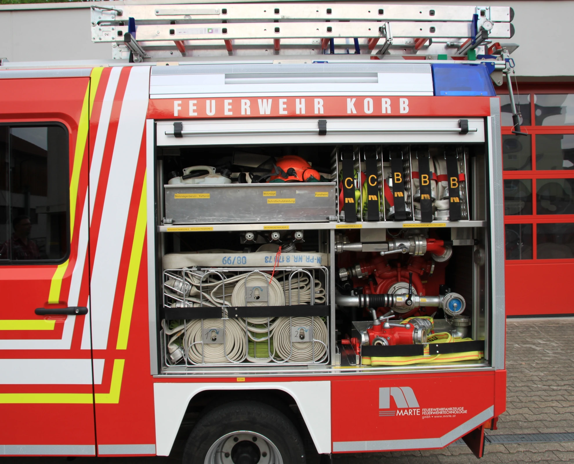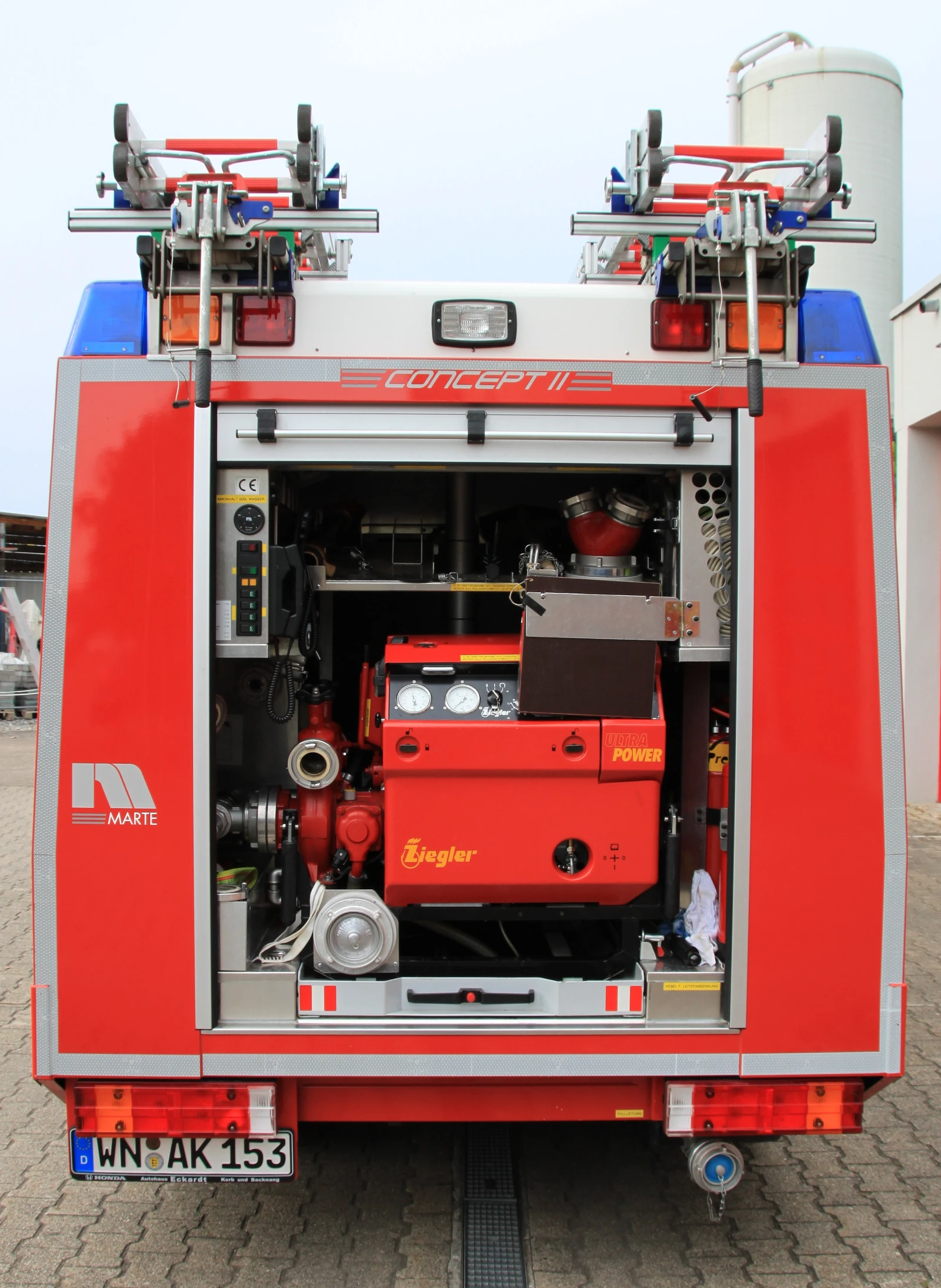 Ausstattung: - Tragkraftspritze TS8/8 als Pumpe - Löschwasserbehälter 500 L - 4 Atemschutzgeräte davon 2 im Mannschaftsraum während der Fahrt anlegbar |
